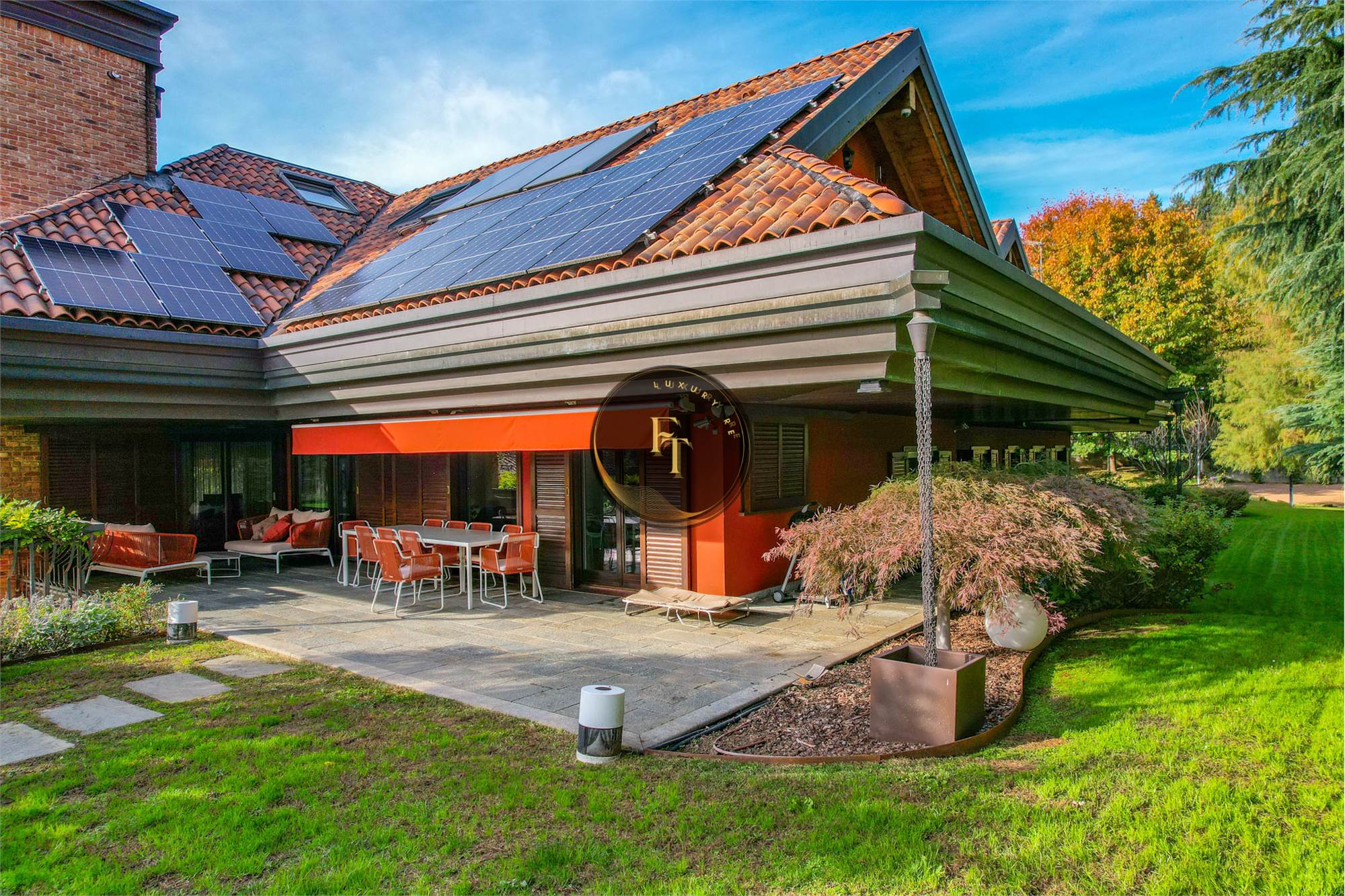 Gli impianti e le dotazioni rispecchiano standard di alto livello: riscaldamento a pavimento alimentata da caldaia a gas e pellet, domotica integrata per la gestione di clima, luci e chiusura finestre e persiane, aria condizionata in tutti gli ambienti, illuminazione Panzeri, arredi su misura Molteni e sistema di allarme perimetrale esterno.