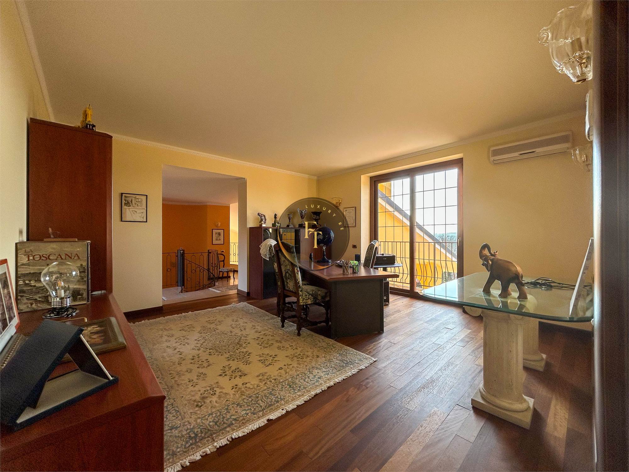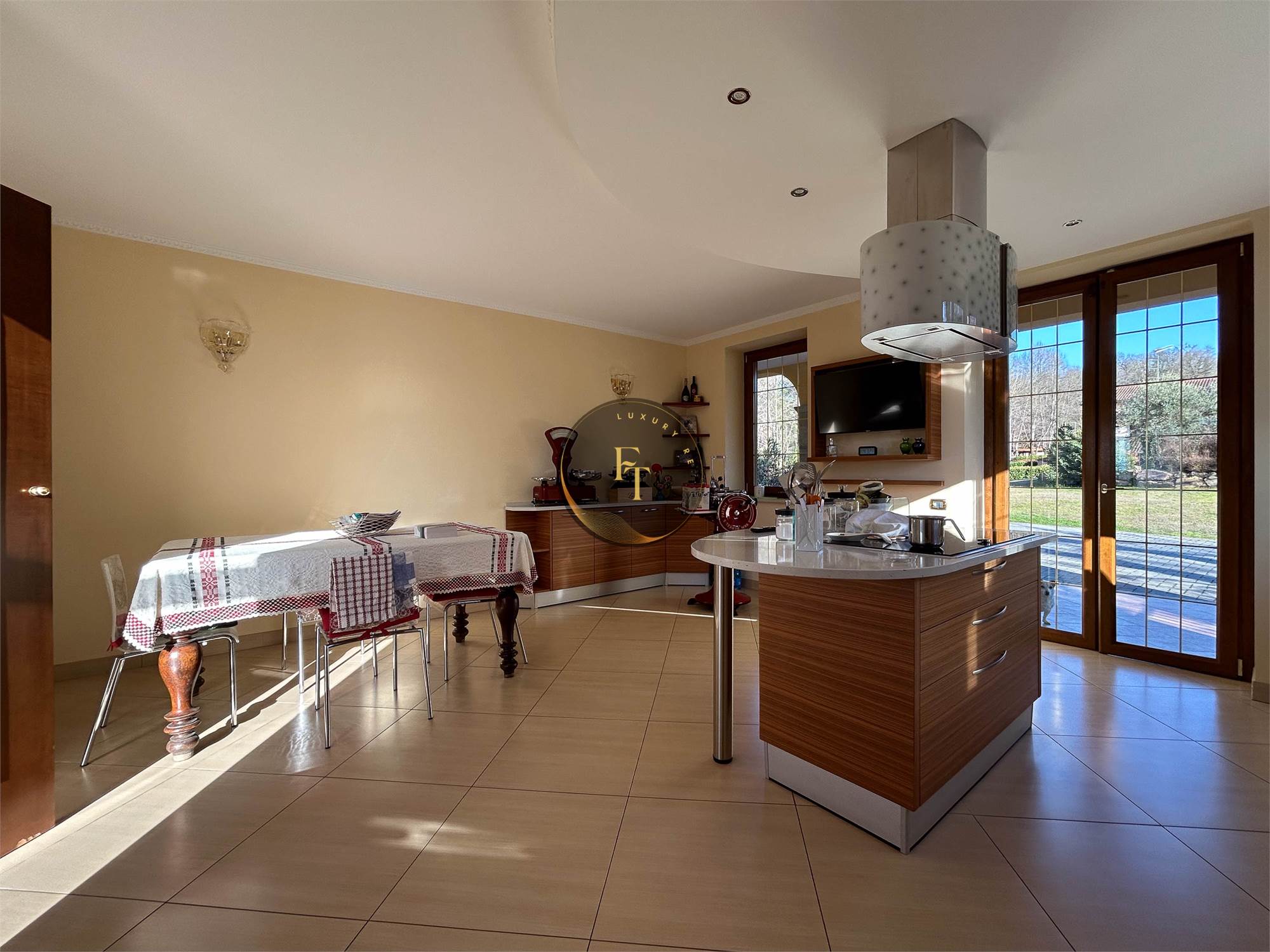 GOLASECCA, situata vicino alle sponde lombarde del fiume Ticino si propone in vendita signorile ed elegante villa singola caratterizzata da ampi spazi luminosi. Si sviluppa su tre piani di cui due fuori terra ed è composta da 15 vani oltre a locali accessori, l'ingresso alla proprietà è indipendente e riservato in quanto si trova alla fine di una strada chiusa. Il giardino pianeggiante è caratterizzato dal vialetto di accesso pedonale dal quale si gode di privacy e tranquillità che porta direttamente al portico di ingresso. La zona giorno è caratterizzata da ampie vetrate e locali accoglienti e funzionali. Le camere sono ampie e quelle principali godono di bagno en suite e cabina armadio. Al piano terra e al primo piano troviamo la disposizione abitativa principale della villa, mentre al piano semi interrato abbiamo ampi locali con accesso al giardino da poter utilizzare come taverna, un appartamento di servizio e una caratteristica cantina di vini. Il box doppio con basculanti elettriche garantiscono la possibilità di 5 posti auto. Al piano terra possiamo accedere al panoramico terrazzo e alla vasca idromassaggio coperta che garantisce privacy per momenti di relax godendo del panorama circostante. La location è altrettanto invidiabile: a pochi chilometri dal Lago Maggiore, da Varese e dalla Svizzera, la villa è perfettamente collegata grazie alla rete autostradale che permette di raggiungere facilmente Milano, il Piemonte e il resto del Nord Italia. Inoltre, l’aeroporto internazionale di Milano Malpensa si trova a breve distanza.